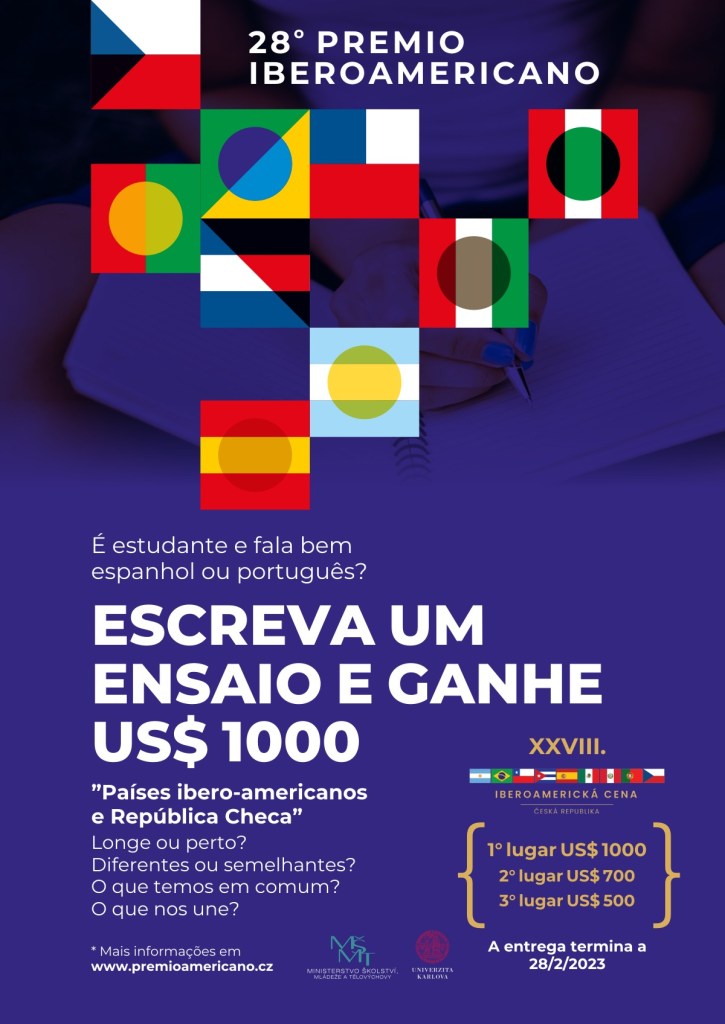 Seguindo uma tradição iniciada em 1994, as Embaixadas dos países Ibero-americanos acreditados na República Checa (Argentina, Brasil, Chile, Cuba, Espanha, México, Peru, Colúmbia e Portugal), convocam uma nova edição do Prémio Ibero-Americano e instamos todos os estudantes das universidades checas a participarem e a apresentarem os seus ensaios em espanhol ou em português.